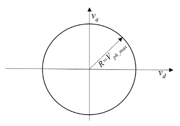 Рисунок показывает круг, который ограничивает d-q вектор напряжения.