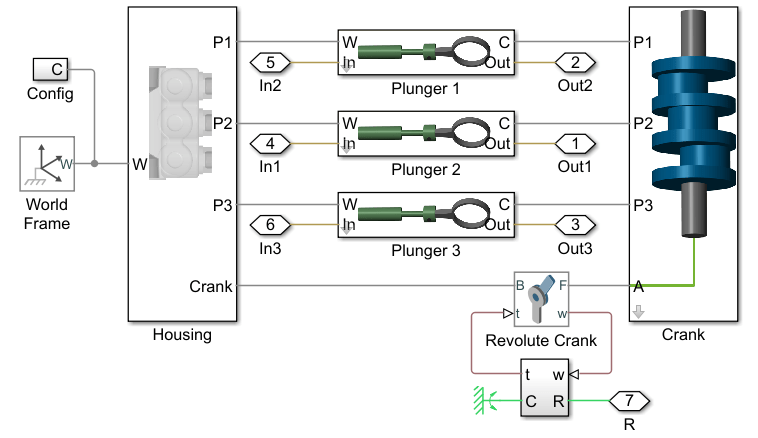 Этот пример использует много вспомогательных файлов, которые хранятся в zip-файле. Разархивируйте файл, чтобы получить доступ к вспомогательным файлам, загрузить параметры модели и создать библиотеку поршневого насоса.