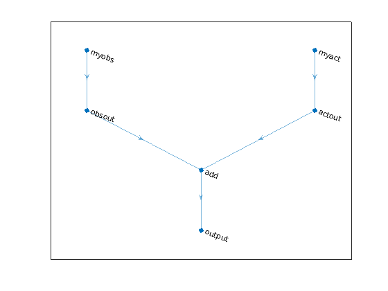 для дискретного пространства действий. net глубокая нейронная сеть, используемая в качестве аппроксимации, и должна иметь только наблюдения, как введено и один выходной слой, имеющий столько же элементов сколько количество возможных дискретных действий. Этот синтаксис устанавливает свойства ObservationInfo и ActionInfo critic соответственно к входным параметрам observationInfo и actionInfo, содержа наблюдения и спецификации действия. Здесь, actionInfo должен быть rlFiniteSetSpec объект, содержащий технические требования для дискретного пространства действий. Наблюдение называет obsName должны быть имена входных слоев net.