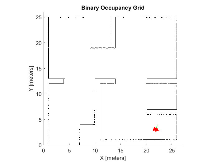 В этом примере показано, как создать карту среды с помощью показаний датчика области значений, и робот позирует роботу с дифференциальным приводом.