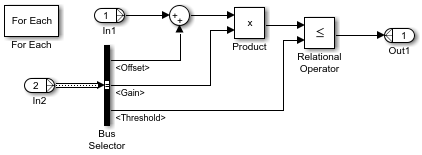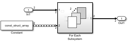 Для Каждого блока Subsystem итеративно обрабатывает постоянные значения для каждой невиртуальной шины в массиве. Содержимое подсистемы отображает невиртуальную шину вместо массива шин, который соединяется с портом.