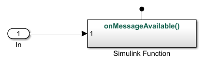 Стрелка от блока Queue до Функционального блока Simulink указывает на вызов onMessageAvailable() функция.
