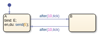 Caller график содержит два состояния, A и B. Когда вы связываете выходное событие E в A состояния:
