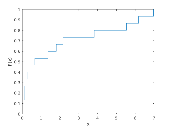 = ecdf(y,Name,Value)f, оцененный в точках в x, с дополнительными опциями, заданными одним или несколькими Name,Value парные аргументы.
