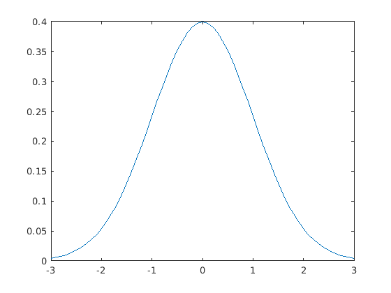x = [-3:.1:3]; y = normpdf(x,0,1);