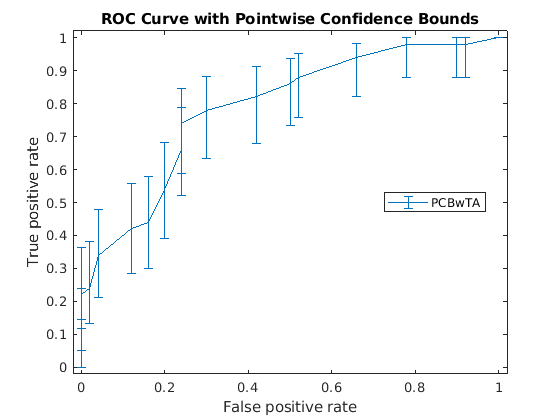Если perfcurve не вычисляет pointwise доверительные границы, AUC скалярное значение.