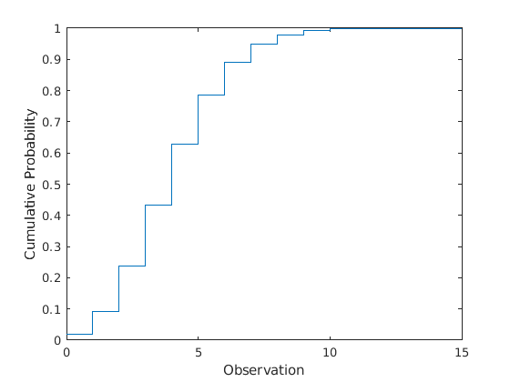 figure stairs(x,y) xlabel('Observation') ylabel('Cumulative Probability')