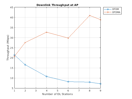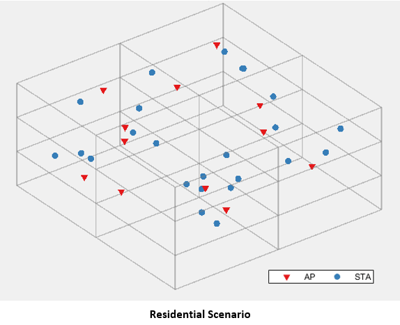 Демонстрирует, как симулировать удар пространственного повторного использования (SR) с основной услугой установлена (BSS), окрашивающей на пропускной способности IEEE® 802.11ax™ жилая сеть сценария использование SimEvents®, Stateflow® и WLAN Toolbox™. Этот пример симулирует непространственные группы повторного использования, которые перекрывающийся пакет BSS обнаруживает (PD OBSS) заданный в Поправке [1] IEEE® P802.11ax™/D4.1. Основная цель этой функции состоит в том, чтобы увеличить производительность сети в плотном сетевом сценарии путем максимизации повторного использования частоты между BSSs. Это достигается путем корректировки порога PD OBSS в области значений [-62,-82] dBm. Каждый BSS присвоен, код уникального цвета вызвал цвет BSS. Цвет BSS позволяет 802.11ax станция (STA) решить, позволено ли одновременное использование спектра частоты наряду с OBSS или нет. Это приводит к игнорированию систем координат от OBSS и включает параллельную передачу данных к нескольким устройствам в плотном сетевом сценарии, смягчающем отсоединенную проблему узла. Чтобы продемонстрировать SR с функцией окраски BSS, пример демонстрирует сетевую топологию, состоящую из четырех BSSs в жилой квартире двух этажей. Каждый пол содержит два BSSs, и каждый BSS состоит из точки доступа (AP) и STA. Модель позволяет вам сконфигурировать пороговые значения PD OBSS в области значений [-62,-82] dBm и изучить ее удар на пропускную способность каждого BSS. Можно также написать собственный алгоритм, чтобы управлять пороговыми уровнями PD OBSS динамически во время симуляции.