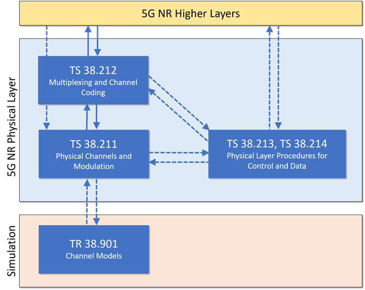 5G Toolbox™ обеспечивает внедрения для подмножества 5G НОМЕР физической спецификации слоя и технических требований модели канала. На следующей диаграмме показана область применения 5G Toolbox с точки зрения адресных спецификаций и их возможностей подключения.