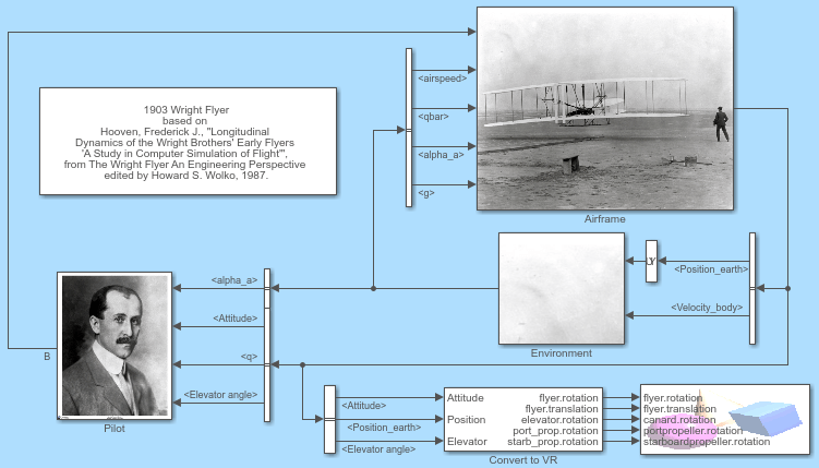 Откройте модель Wright Flyer, введя aeroblk_wf_3dof в командной строке MATLAB.