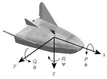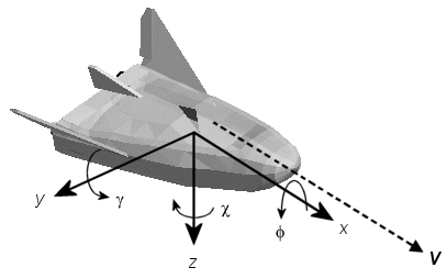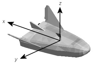 Моделировать самолеты и космические аппараты проще всего, если использовать систему координат, закрепленную в самом корпусе. В случае летательных аппаратов направление движения вперед изменяется наличием ветра, и движение летательного аппарата по воздуху не совпадает с его движением относительно земли.