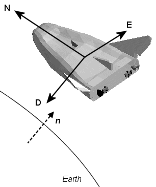 Система «север-восток-вниз» (NED) представляет собой неинерциальную систему, начало которой закреплено в центре тяжести летательного аппарата или космического аппарата. Его оси ориентированы вдоль геодезических направлений, определяемых поверхностью Земли.