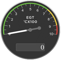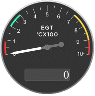 В этом примере описывается изменение цветовой области индикатора EGT. По умолчанию индикатор EGT выглядит следующим образом.