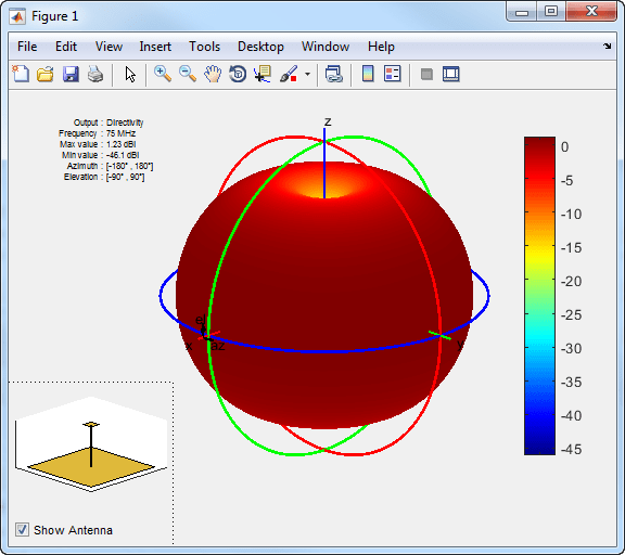 Визуализация диаграммы направленности по умолчанию monopoleTopHat антенна.