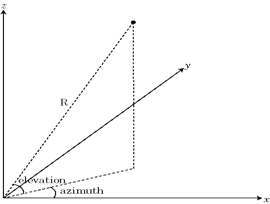 Преобразуйте прямоугольные координаты в сферические (az, el, R), используя: