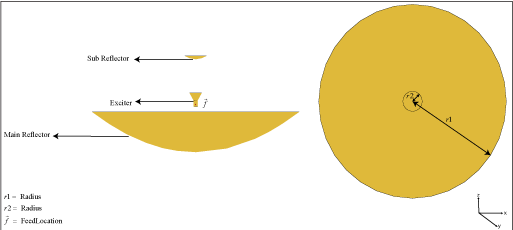 cassegrain объект создает антенну Кассегрена. Антенна Кассегрена - параболическая антенна, использующая систему двойных отражателей. В этой антенне питающая антенна установлена на поверхности основного параболического отражателя или за ней и направлена на вторичный отражатель. Дополнительные сведения см. в разделе Архитектура Кассегренской антенны.