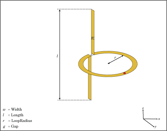 dipoleCycloid объект представляет собой полуволновую циклоидную дипольную антенну. Для циклоидного диполя по умолчанию точка подачи находится на участке контура. По умолчанию используется рабочая частота 48 МГц.