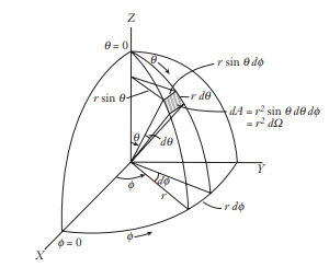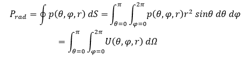 где, U = интенсивность излучения (W/единичный сплошной угол),