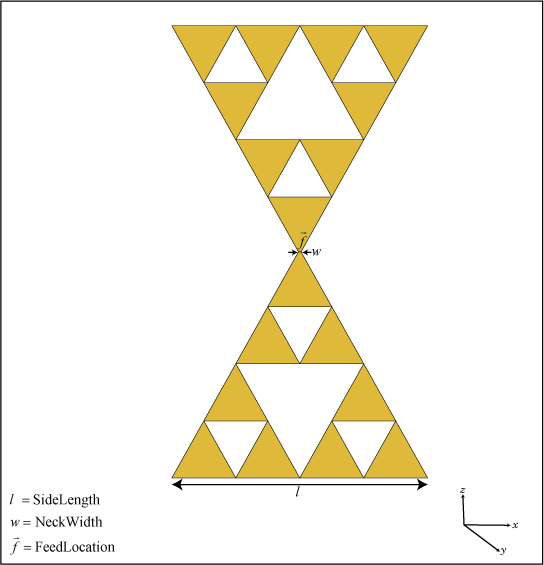 fractalGasket объект создает равностороннюю треугольную фрактальную антенну Sierpinski's Gasket. Эти фракталы используются в построении систем связи, беспроводных сетей, универсальных тактических систем связи, мобильных устройств, телематики и антенн радиочастотной идентификации (RFID).