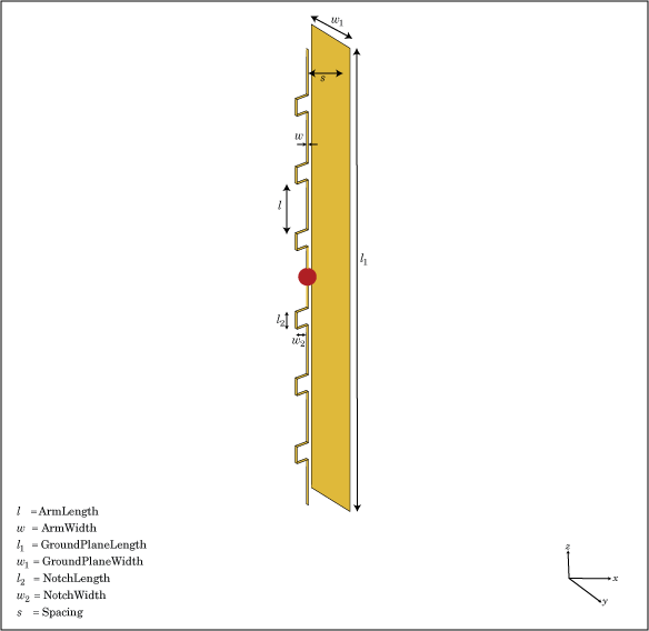 Используйте sectorInvertedAmos создание перевернутой антенны сектора Амоса, состоящей из четырех дипольных рычагов. Антенна питается в начале координат диполя. Плечи диполя симметричны относительно начала координат. Рабочая частота антенны составляет 2,45 ГГц.
