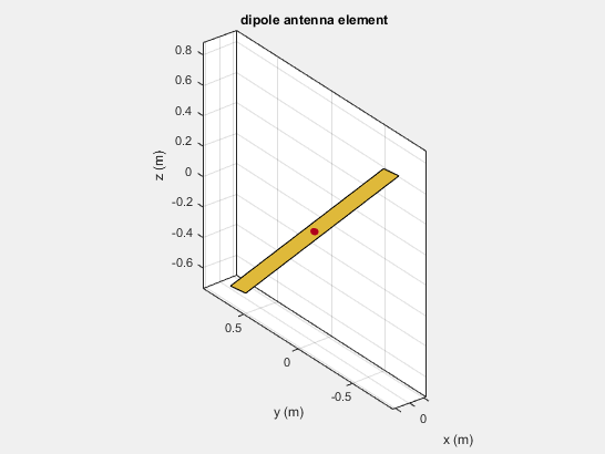 TiltAxis: [0 1 0]На основе Tilt и TiltAxis свойства дипольного элемента поворачиваются на 90 градусов вокруг оси y и параллельны плоскости X-Y. Чтобы сделать диполь перпендикулярным плоскости X-Y, измените Tilt свойство диполя 0 степени.