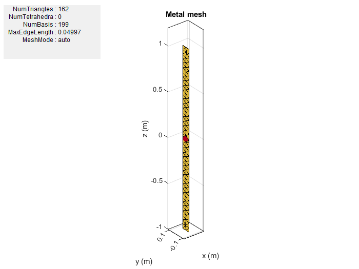 Длина антенны остается прежней, но при изменении рабочей частоты антенны изменяется число треугольников в сетке, как и решения для функций анализа.
