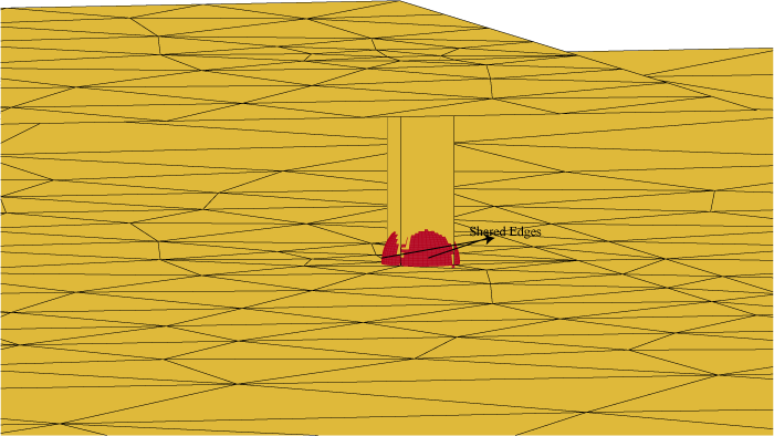Рассмотрим приведенную выше сетку для уложенной в стопку патч-антенны с твердотельной квадратной моделью подачи. Увеличьте изображение модели подачи. Видно, что твердотельная квадратная подача имеет четыре ребра, соединенных с нулевой плоскостью. Эта модель подачи увеличивает число неизвестных, но пытается более точно представить геометрию подачи.