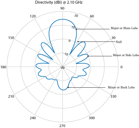 Major or Main lobeПоказывает направление максимального излучения или мощности антенны.