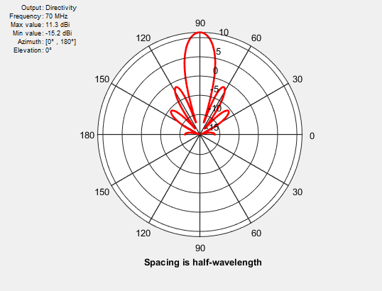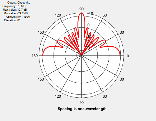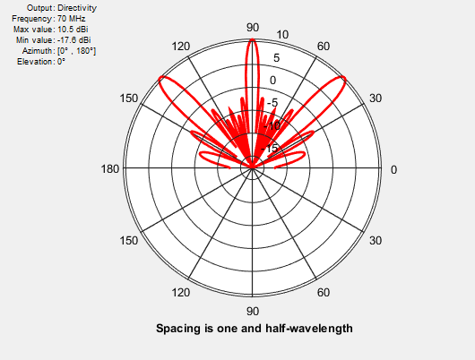 Рассмотрим линейную матрицу из семи элементов, разнесенных на половину длины волны. Этот массив не содержит лепестков решетки.