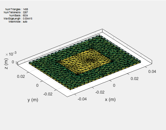 Для антенн, использующих диэлектрики и металлы, Antenna Toolbox использует тетраэдры для дискретизации объема диэлектрической подложки.