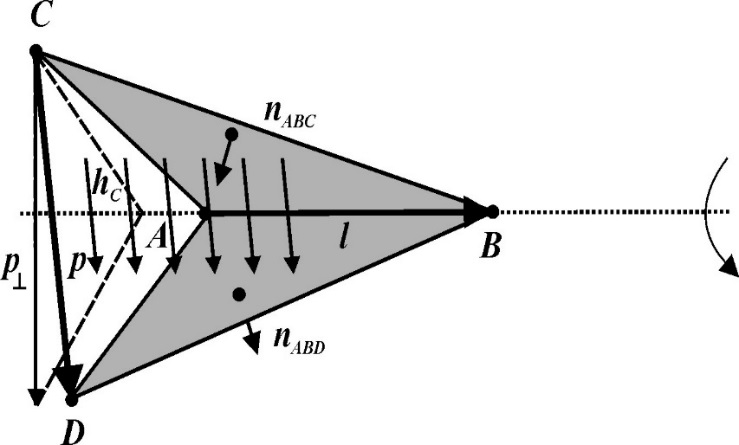 На рисунке показана базисная функция на основе границ. Вариация вектора перпендикулярна базовой кромке AB (или ). Вектор рёберного CD (или определяет базисную функцию. В пределах тетраэдра базисная функция является постоянным полем, задаваемым