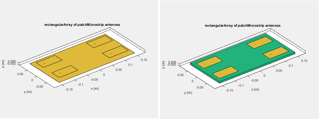 Например, матрица вектора напряжения для 2x2 решетка прямоугольной коммутационной антенны (с диэлектрической подложкой и без нее) имеет четыре столбца, так как каждая антенна может возбуждаться отдельно.