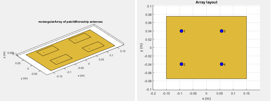 Например, матрица вектора напряжения для 2x2 решетка прямоугольной коммутационной антенны имеет четыре столбца, так как каждая антенна может возбуждаться отдельно.