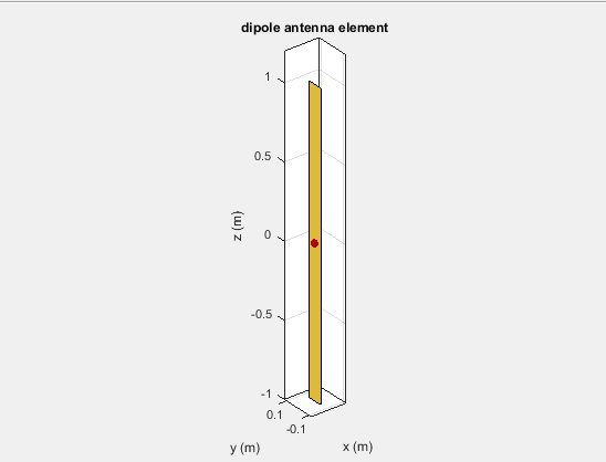 Порт антенны - это физическое местоположение, к которому подключен радиочастотный источник. С точки зрения теории сети антенна имеет один порт. В Antenna Toolbox™ красная точка на фигуре антенны представляет точку питания. Полуволновый диполь показан с точкой его подачи: