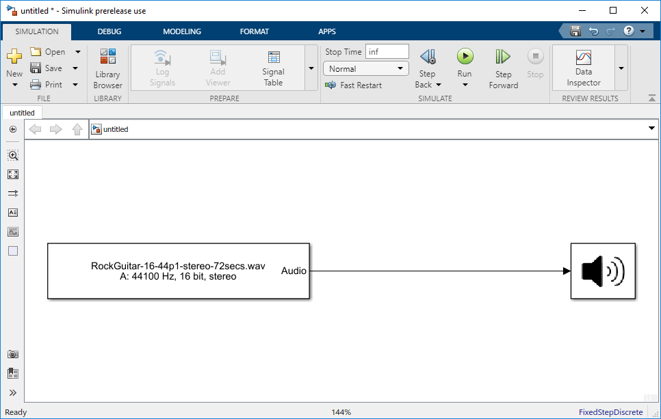 Базовый аудиопроигрыватель - создает аудиомодель, настроенную с настройками, рекомендованными для Audio Toolbox. Эта модель использует блок From Multimedia File для чтения мультимедийных файлов и блок Audio Device Writer для отправки звуковых данных на аудиоустройство по умолчанию на компьютере. При необходимости настройте модель для моделирования аудиосистемы. Например, для обработки ввода звука в реальном времени замените блок «From Multimedia File» блоком «Audio Device Reader».