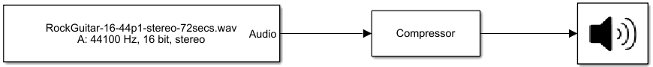 В этом примере компрессор добавляется в модель путем перетаскивания из категории «Динамическое управление диапазоном» обозревателя библиотеки Simulink.