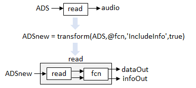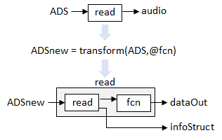 transformDatastore - Новое хранилище данных с настраиваемыми readTransformedDatastoreНовое хранилище данных с настраиваемыми read, возвращено как TransformedDatastore с UnderlyingDatastore установить в значение ADS, Transforms установить в значение fcn, и IncludeInfo установить в значение true или false.