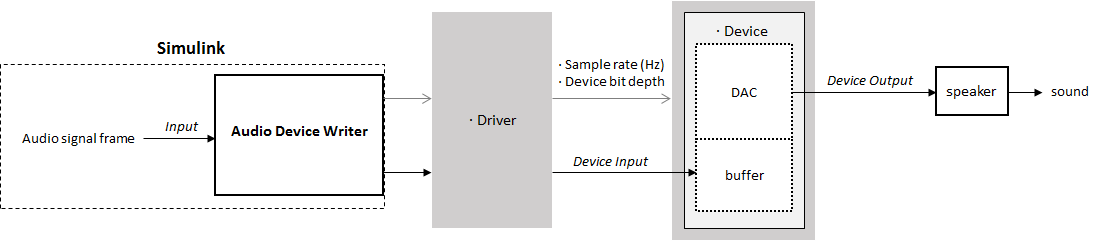 Блок записи аудиоустройств записывает выборки звука в устройство вывода звука.