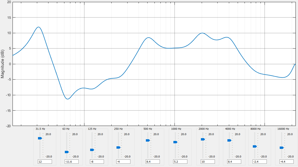 создает графический эквалайзер со значениями по умолчанию.equalizer = graphicEQ
