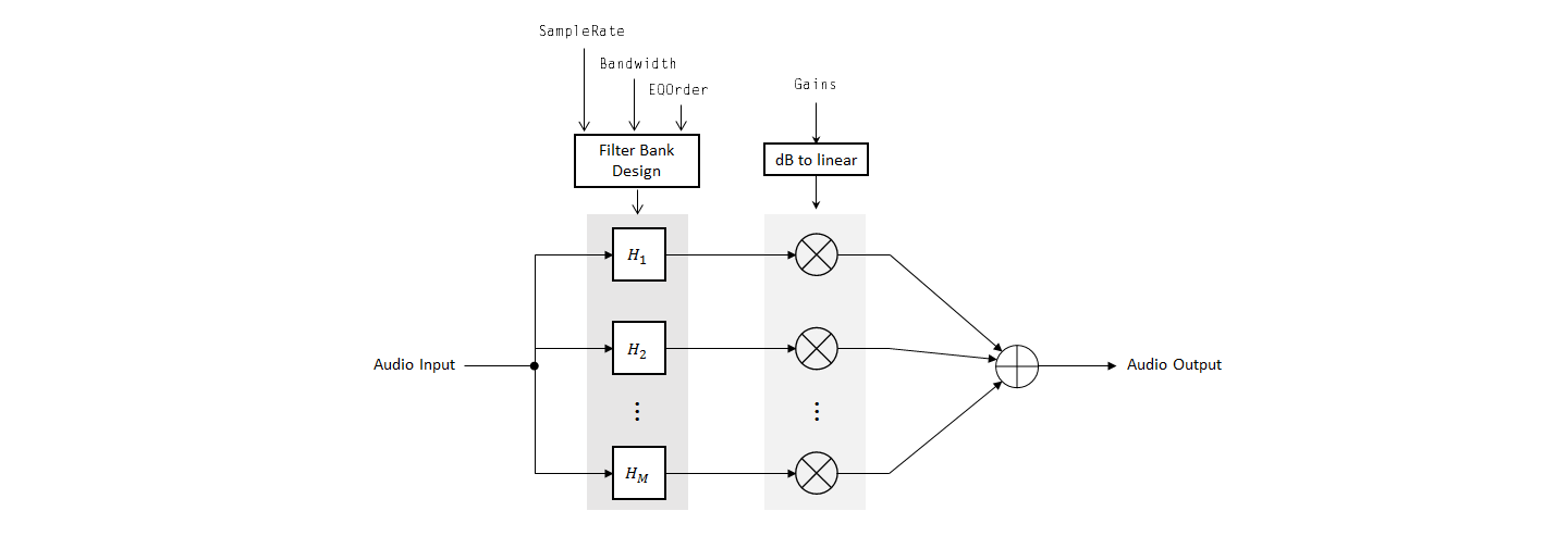 graphicEQ Система object™ реализует графический эквалайзер, который может настраивать усиление на отдельных октавных или дробных октавных полосах. Объект фильтрует данные независимо по каждому входному каналу с течением времени, используя спецификации фильтра. Центральная и граничная частоты полос основаны на стандарте ANSI S1.11-2004.