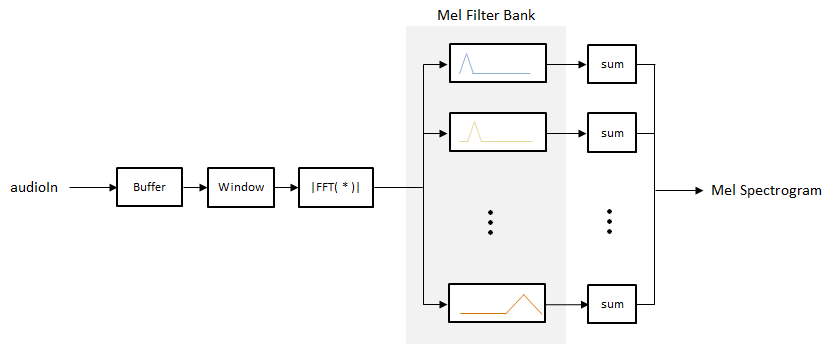S = melSpectrogram(audioin,fs,'WindowLength',1024);S = melSpectrogram(audioIn,fs,'Window',hamming(1024,'periodic'));
