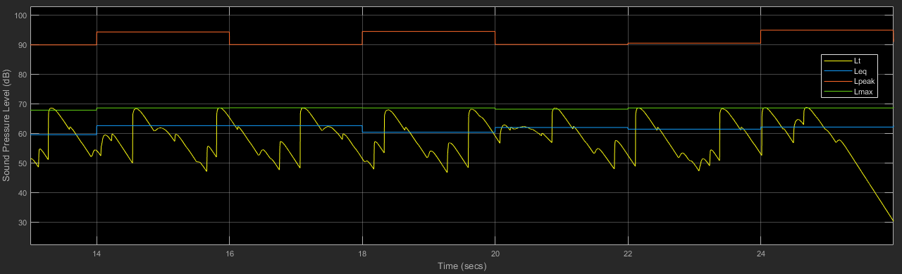 while ~isDone(source) x = source(); player(x); [Lt,Leq,Lpeak,Lmax] = SPL(x); scope([Lt,Leq,Lpeak,Lmax]) end release(source) release(player) release(SPL) release(scope)