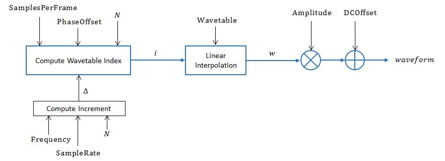wavetableSynthesizer Система object™ генерирует периодический сигнал с настраиваемыми свойствами. Периодический сигнал определяется одноцикловой формой сигнала, кэшируемой как Wavetable собственность вашего wavetableSynthesizer объект.