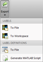 Определения меток можно экспортировать как MAT-файл или как сценарий MATLAB. Сохранение определений меток позволяет согласованно маркировать пользователей и сеансы. Выберите «Экспорт» > «Определения меток» > «В файл».