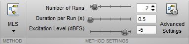 Пауза между прогонами - длительность паузы между прогонами. Во время паузы сигнал возбуждения не посылается, и звук не записывается. При использовании метода Экспоненциального сдвига синусоиды (Exponential Swept Sine) включите паузу между прогонами, чтобы избежать нарастания ревербераций. Пауза между запусками всегда равна нулю для метода MLS.