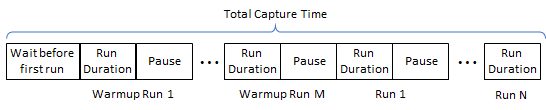 Общее время захвата представляет собой сумму длительностей выполнения, пауз и начального ожидания: