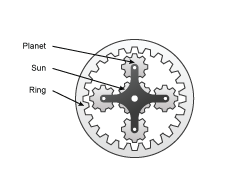 Идеальная планетарная передача с солнцем, кольцом и водилом