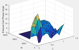 Таблица поиска команд угла фазера кулачка выхлопа, , является функцией нагрузки двигателя и частоты вращения двигателя
