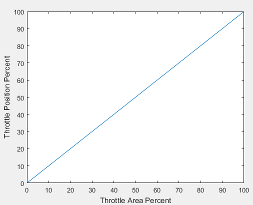 Чтобы учесть нелинейность положения дросселя к площади дросселя, таблица определения процента положения дросселя линеаризует управление массовым расходом воздуха с разомкнутым контуром.