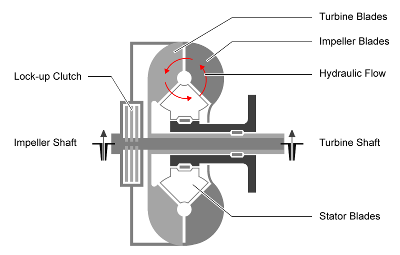 Блок гидротрансформатора реализует трехкомпонентный гидротрансформатор, состоящий из рабочего колеса, турбины и статора с опциональной возможностью блокировки сцепления. Блок может имитировать привод (мощность, протекающая от рабочего колеса к турбине) и накачку (мощность от турбины, рассеиваемая в гидрожидкости гидротрансформатора).